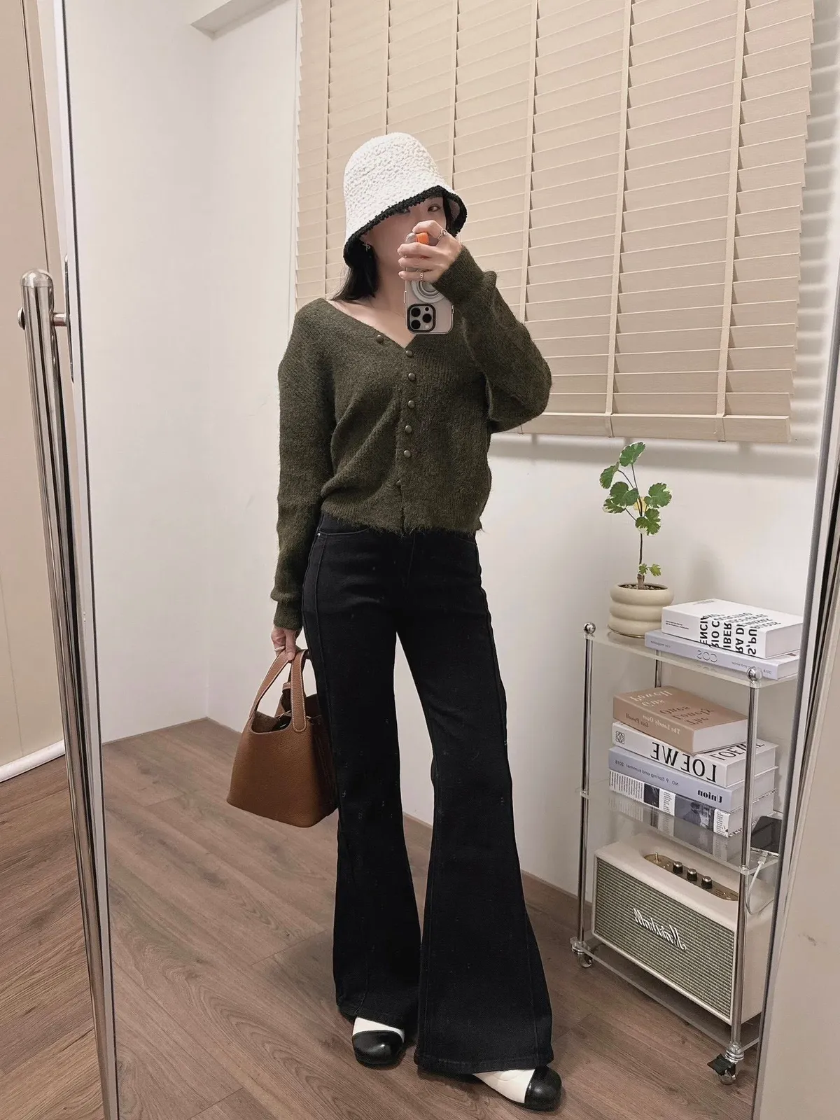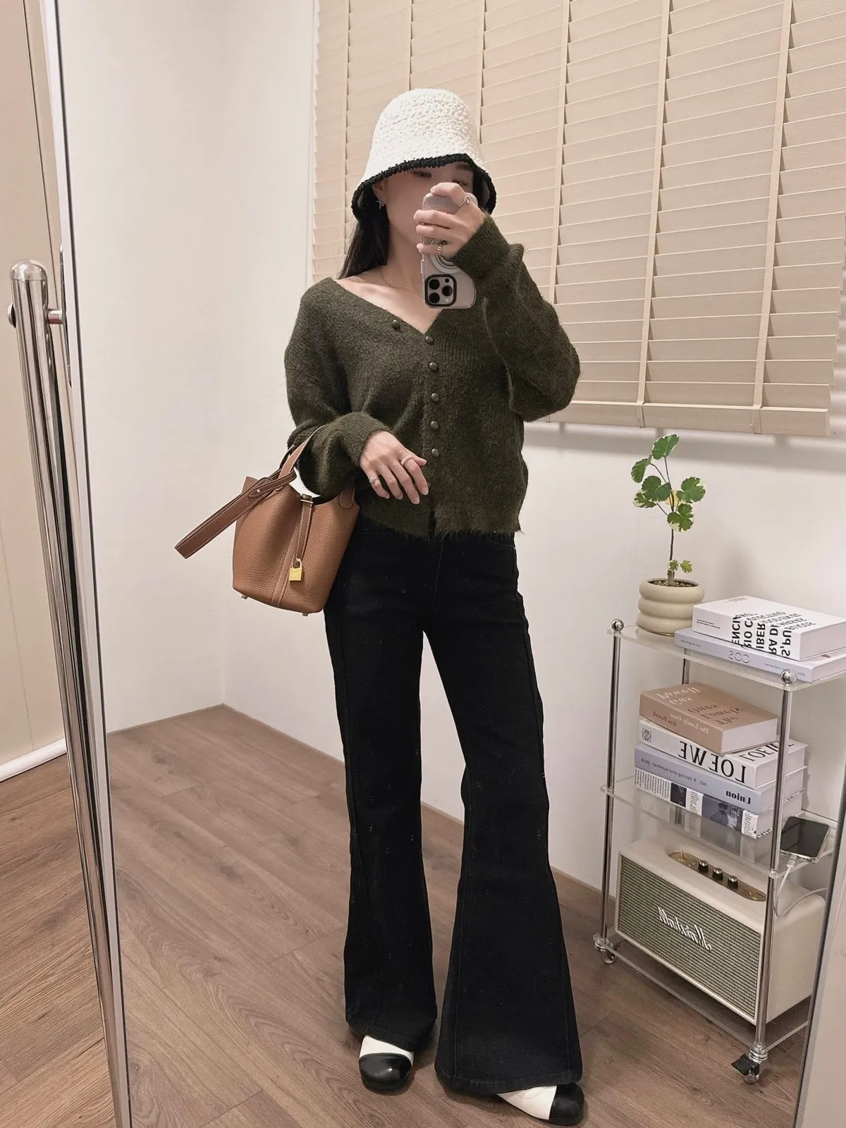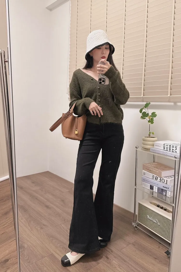 抓皺感V領毛線外