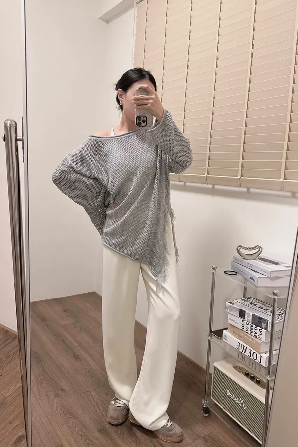 洞洞流蘇針織衫