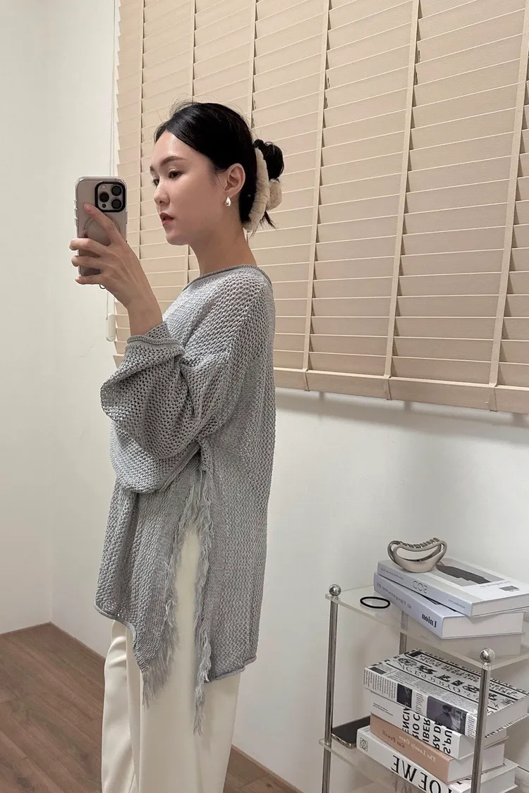 洞洞流蘇針織衫