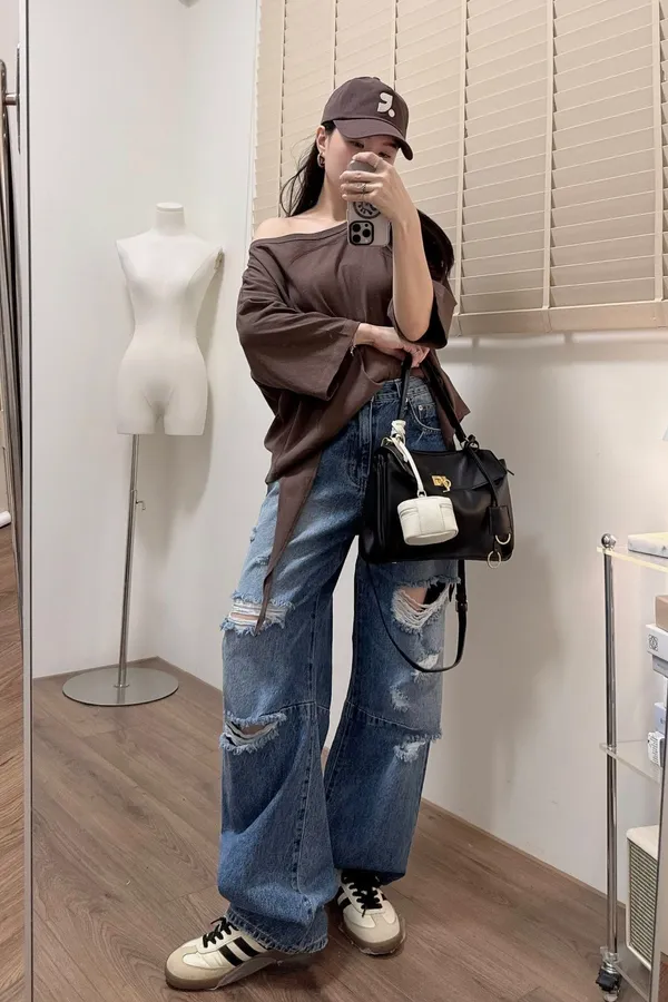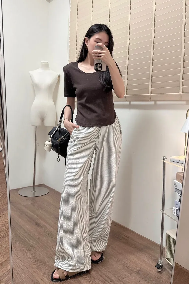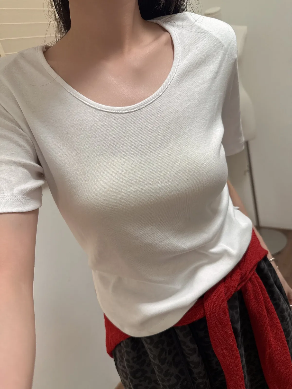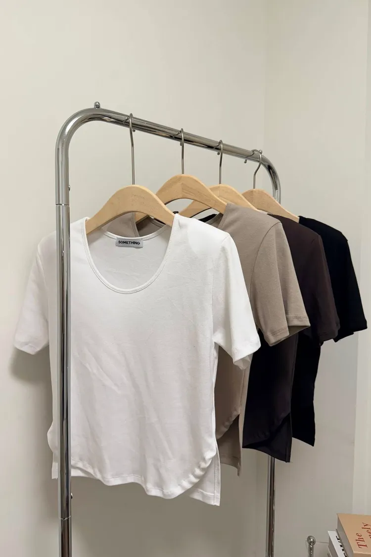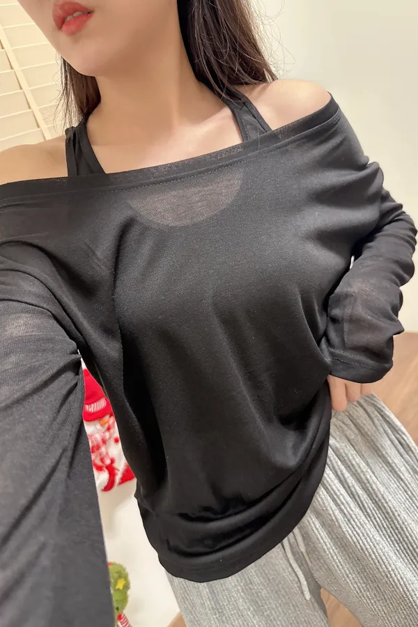 斜肩造型薄長T