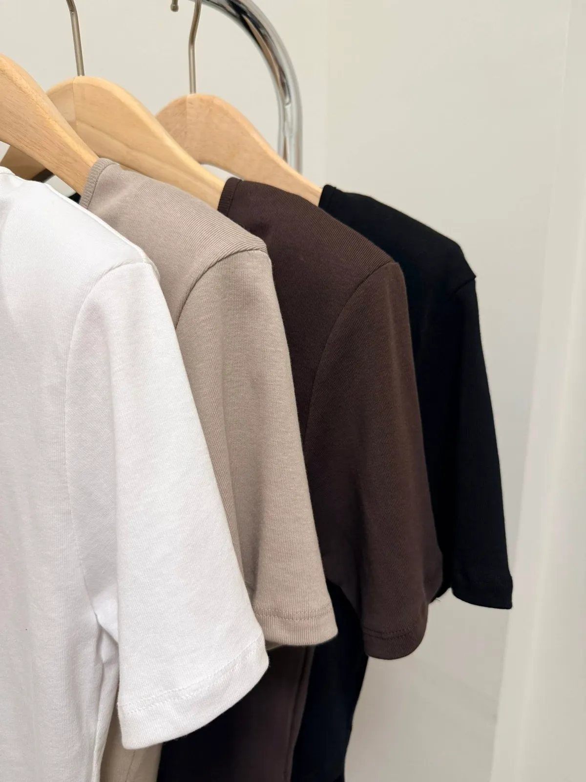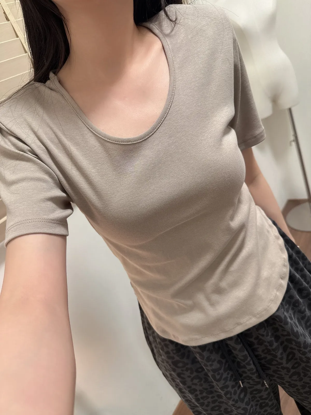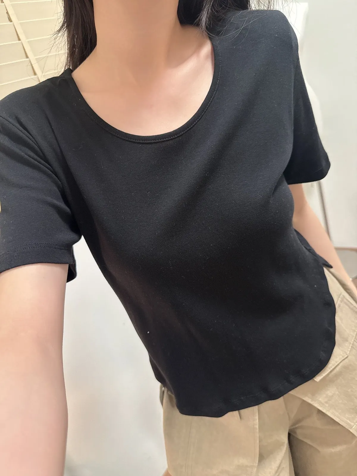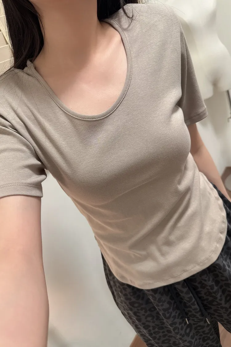 斜肩五分袖T