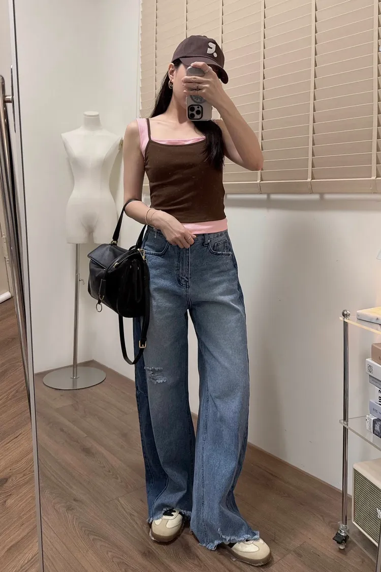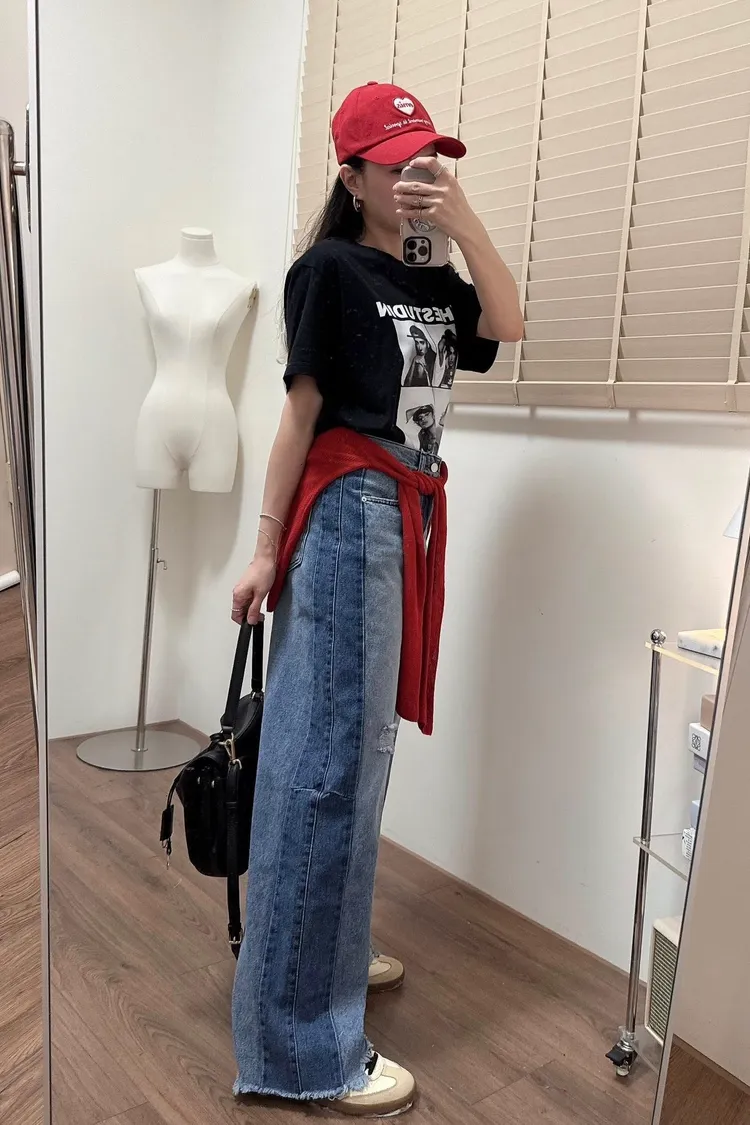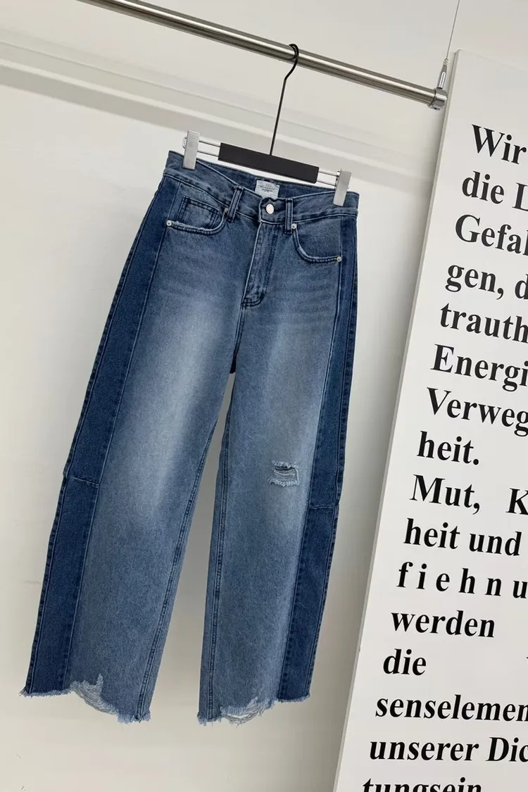 拼接破壞牛仔褲
