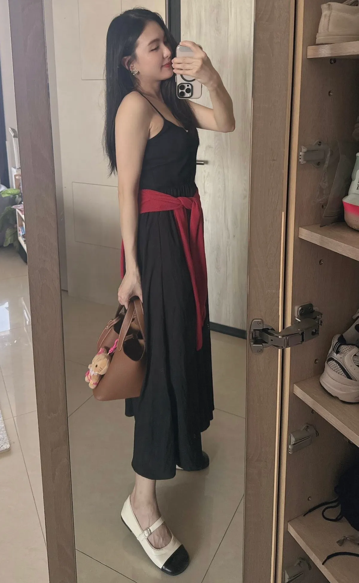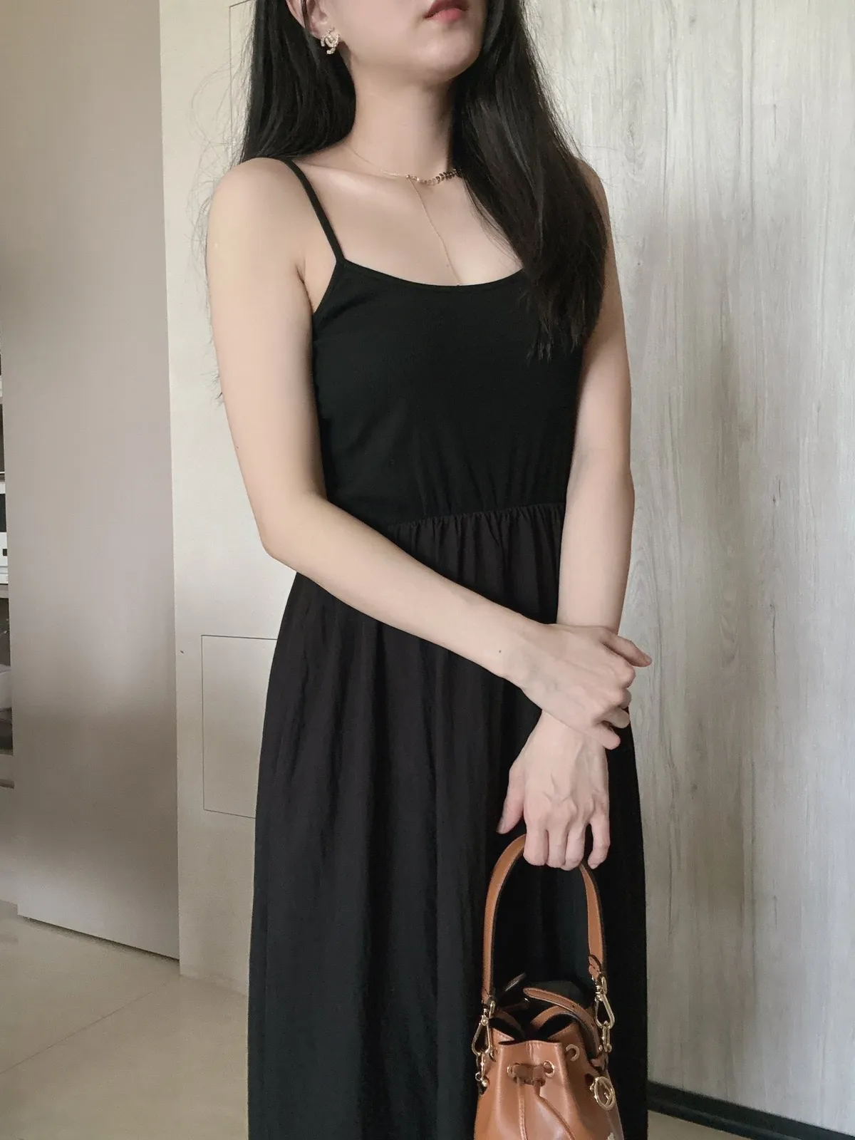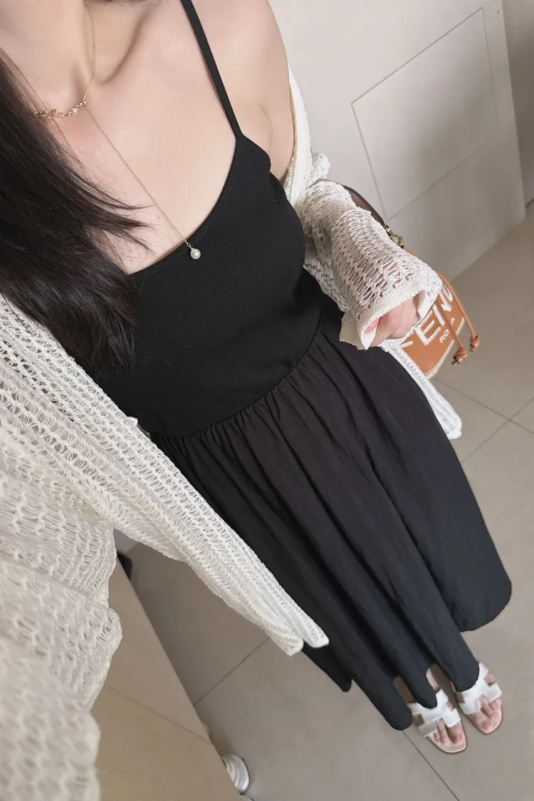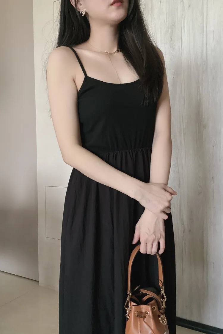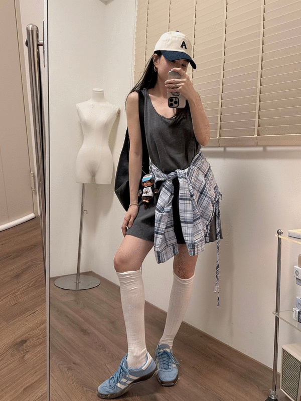 細帶素面口袋背心長洋