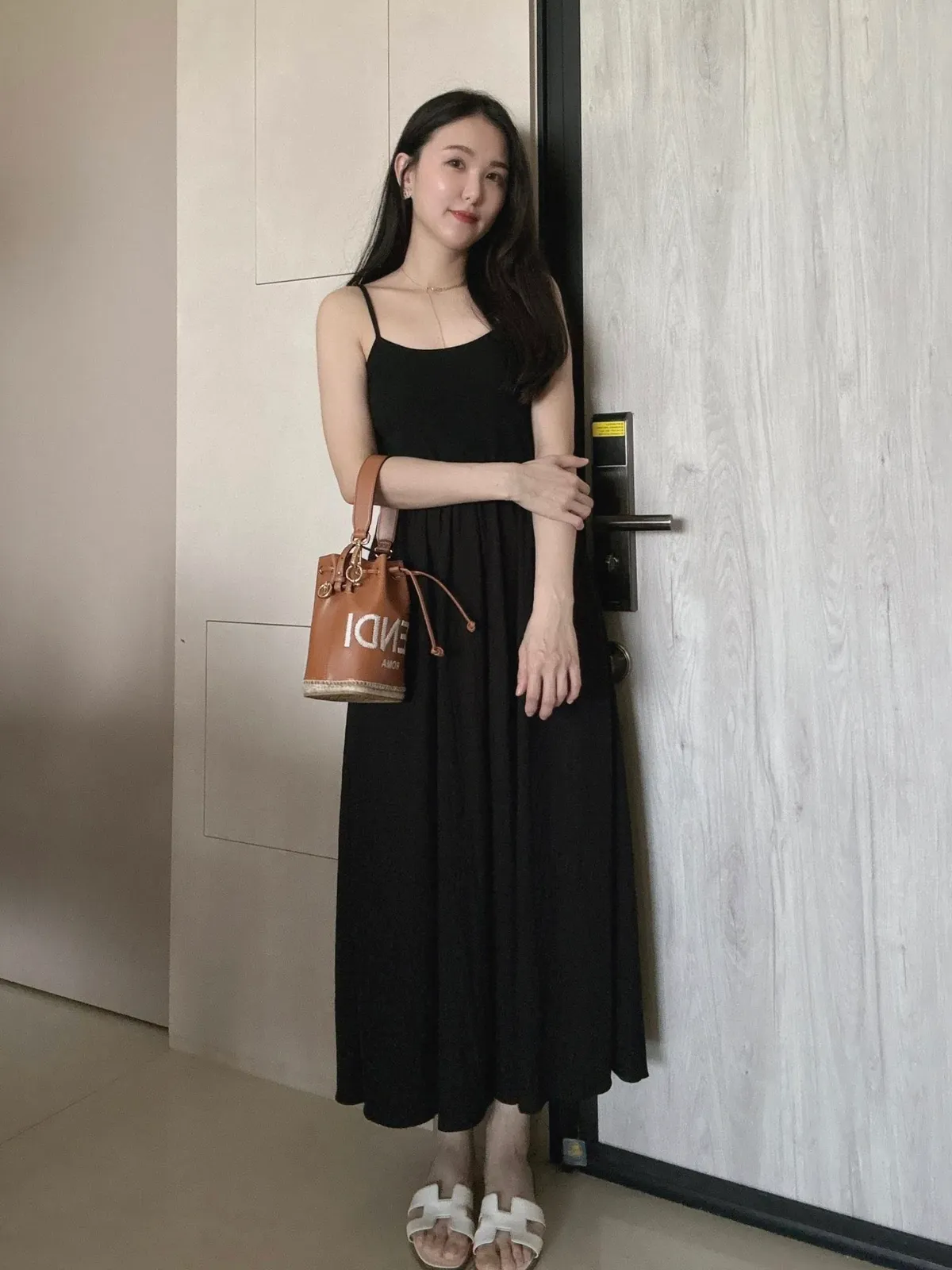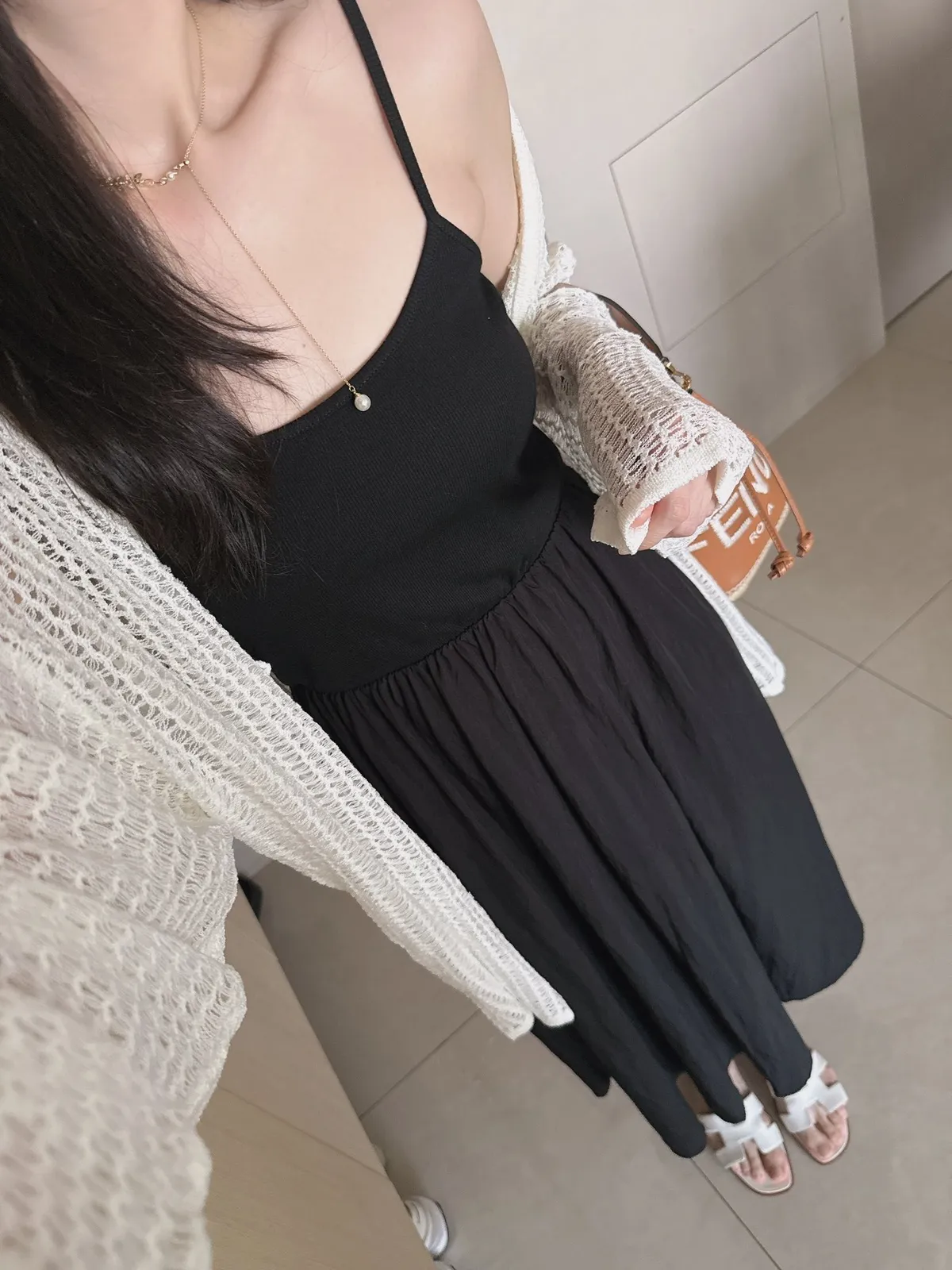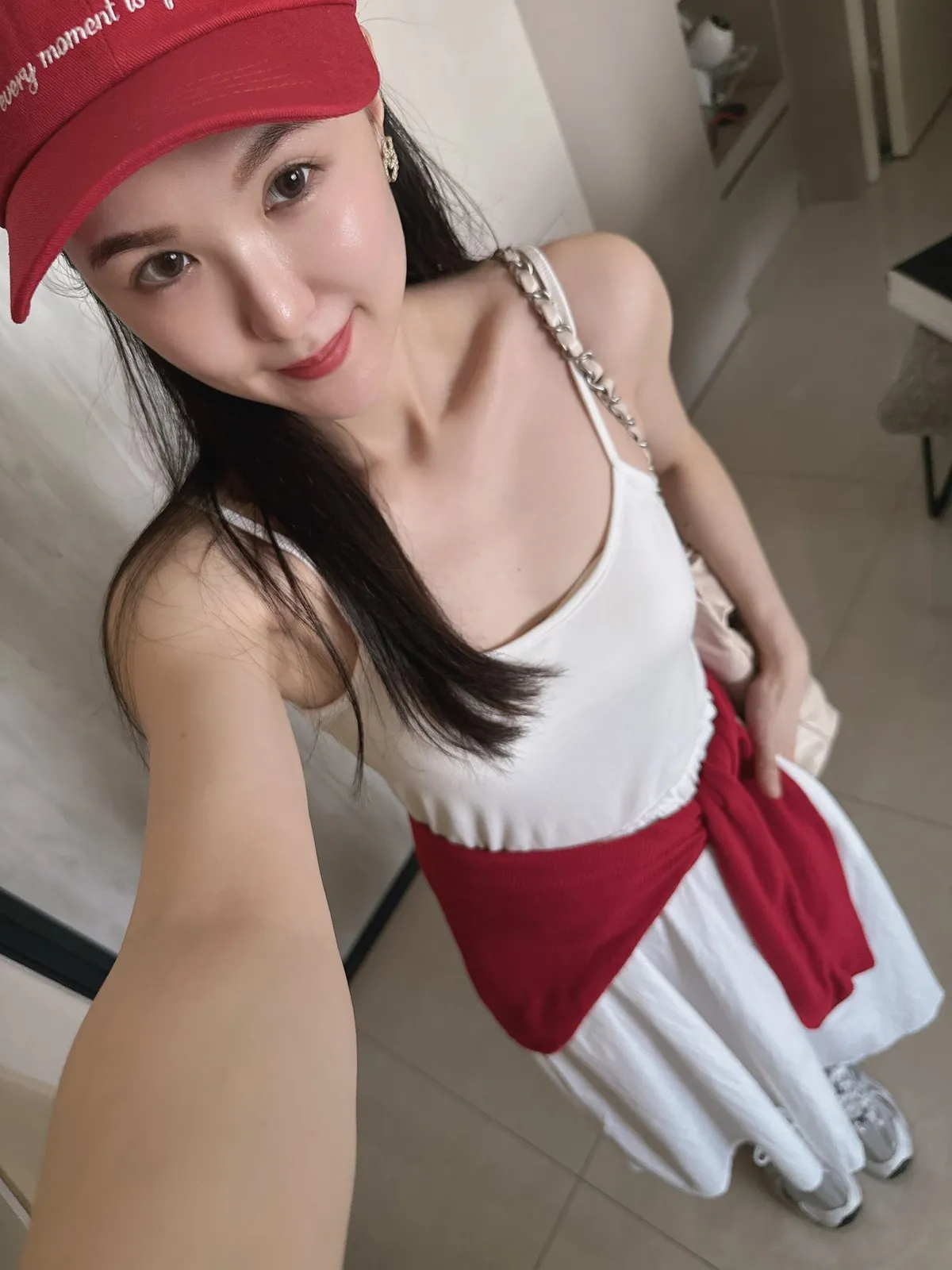 細帶素面口袋背心長洋