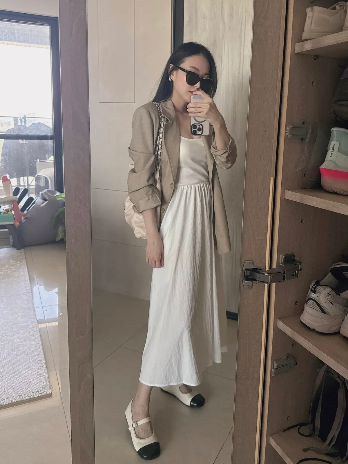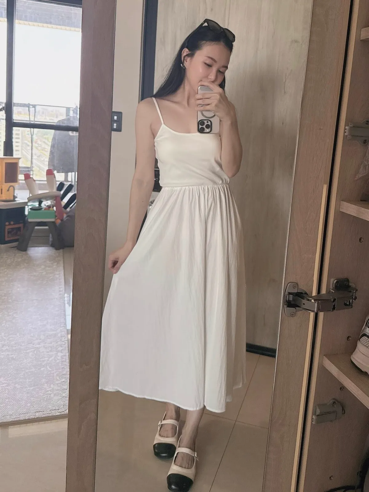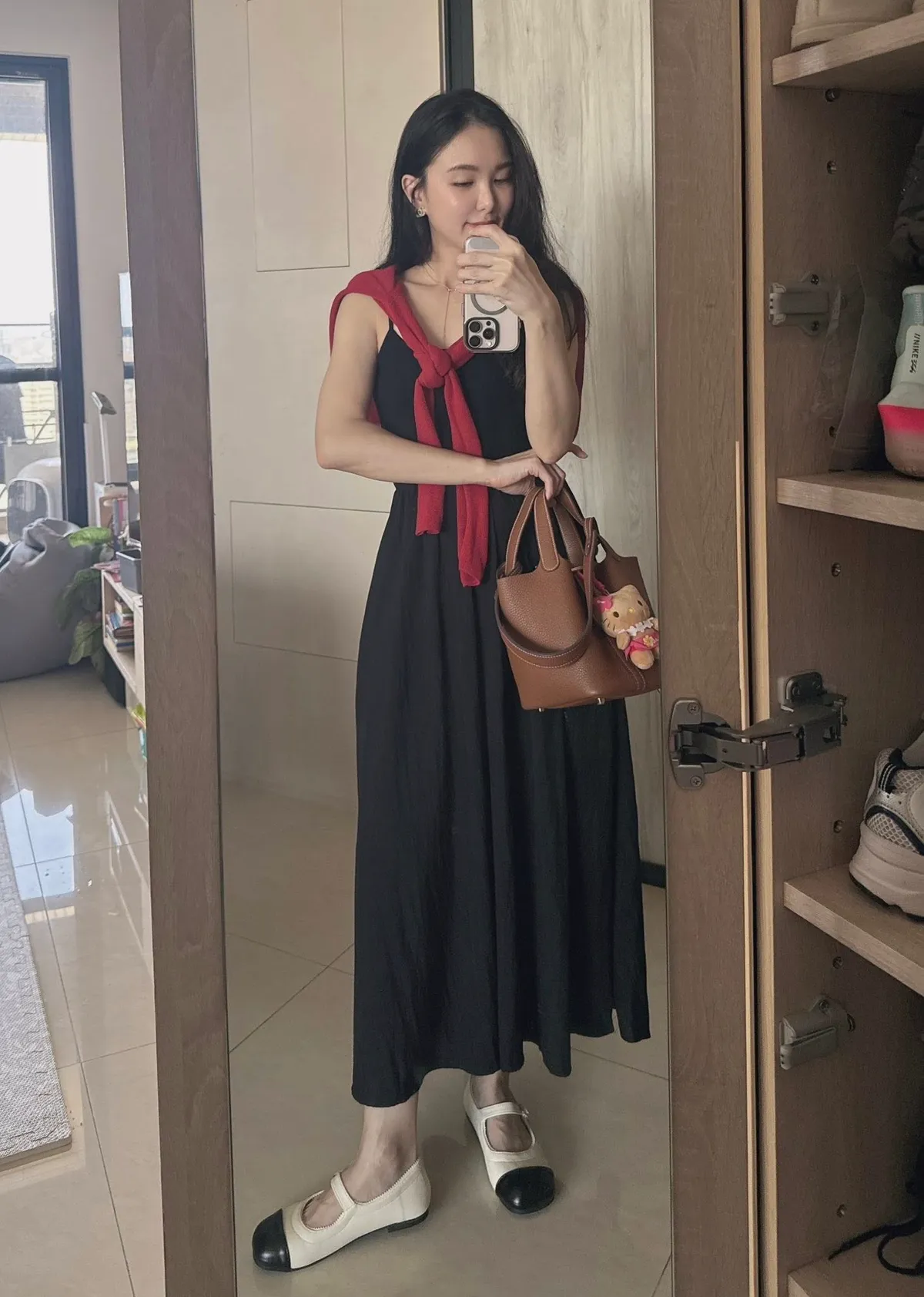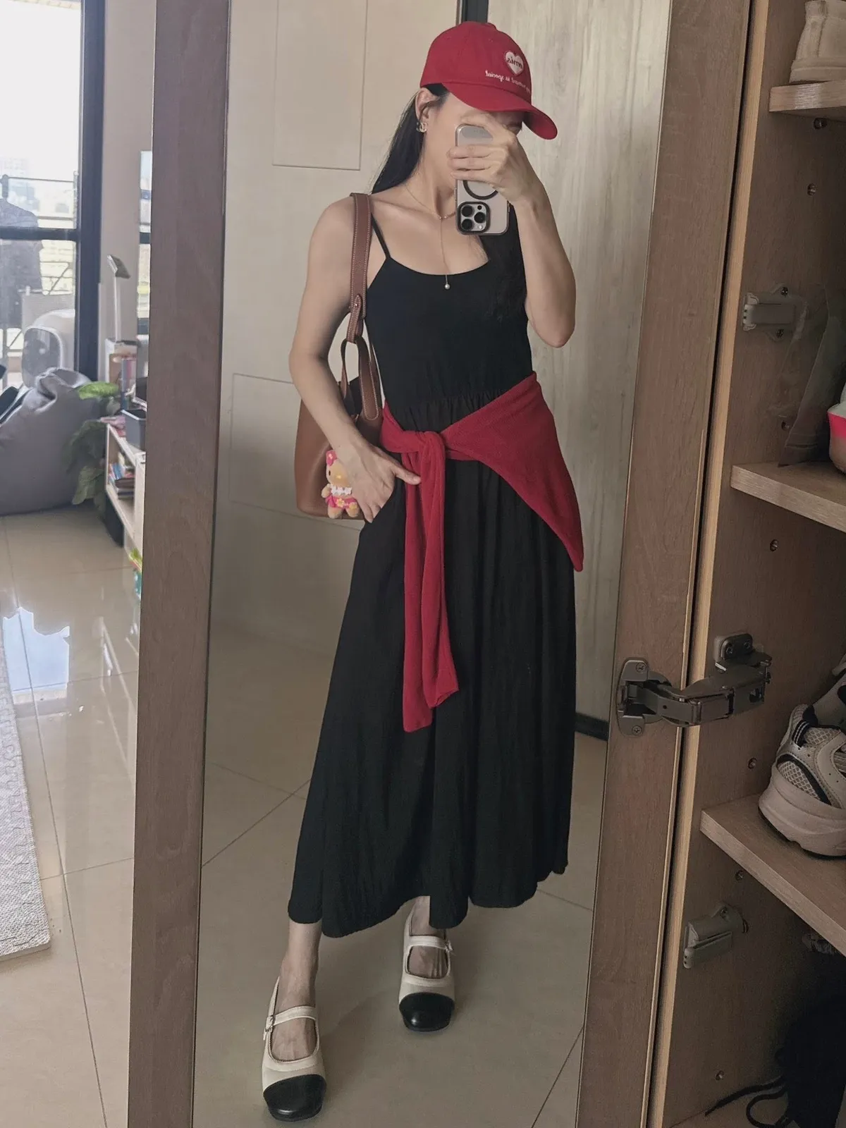 細帶素面口袋背心長洋
